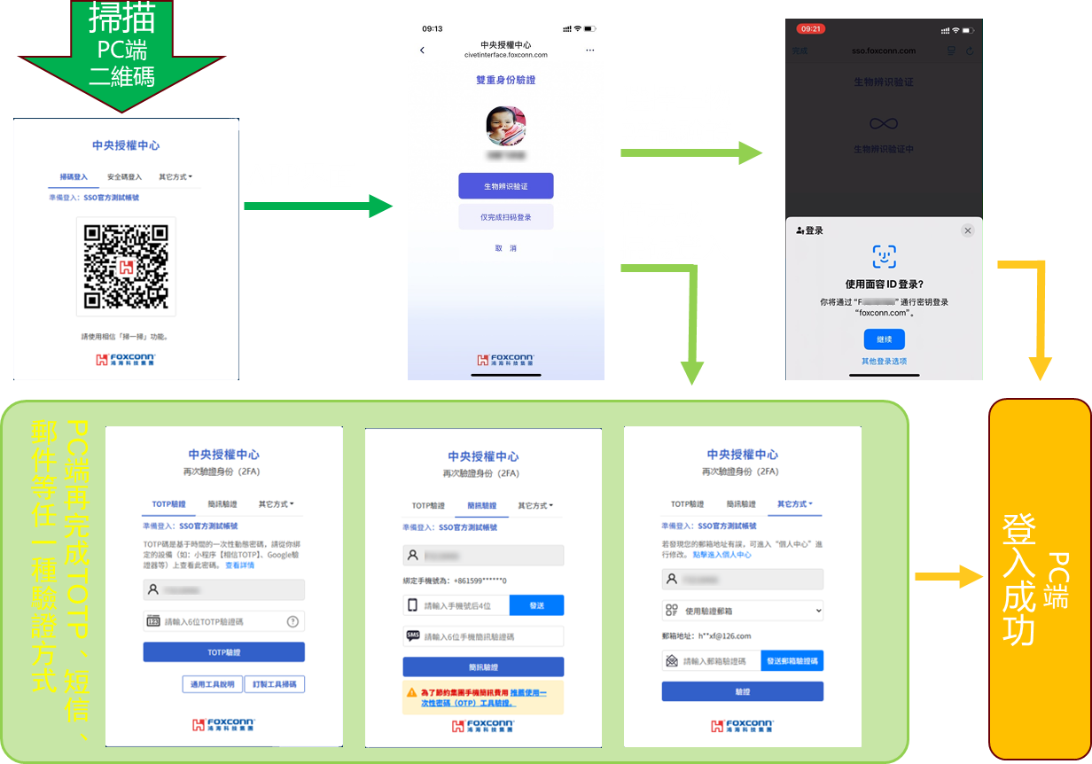 - 中央授權中心以相信掃碼、相信動態碼、密碼為驗證的第一因子。